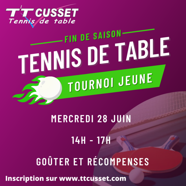 Pour clotûrer la saison, le club organise un tournoi jeune le mercredi 28 juin de 14h à 17h suivi d'un goûter partagé.