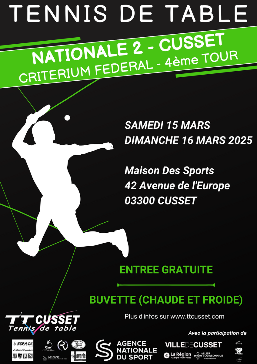 Critérium fédéral - Nationale 2 - 4ème tour - Toutes les informations dont vous avez besoin ainsi que les résultats de la compétition ici.