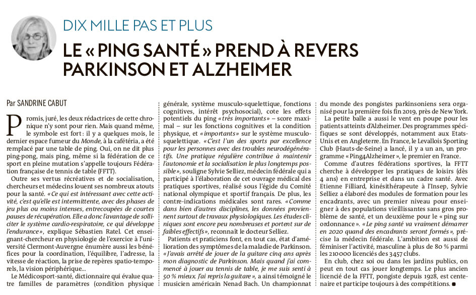 Voici un article paru dans "Le Monde - Science et médecine" le 5 février 2019
