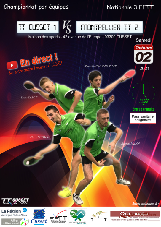 Pour la deuxième journée de championnat l'équipe fanion reçoit MONTPELLIER TT 2 le samedi 2 octobre prochain.